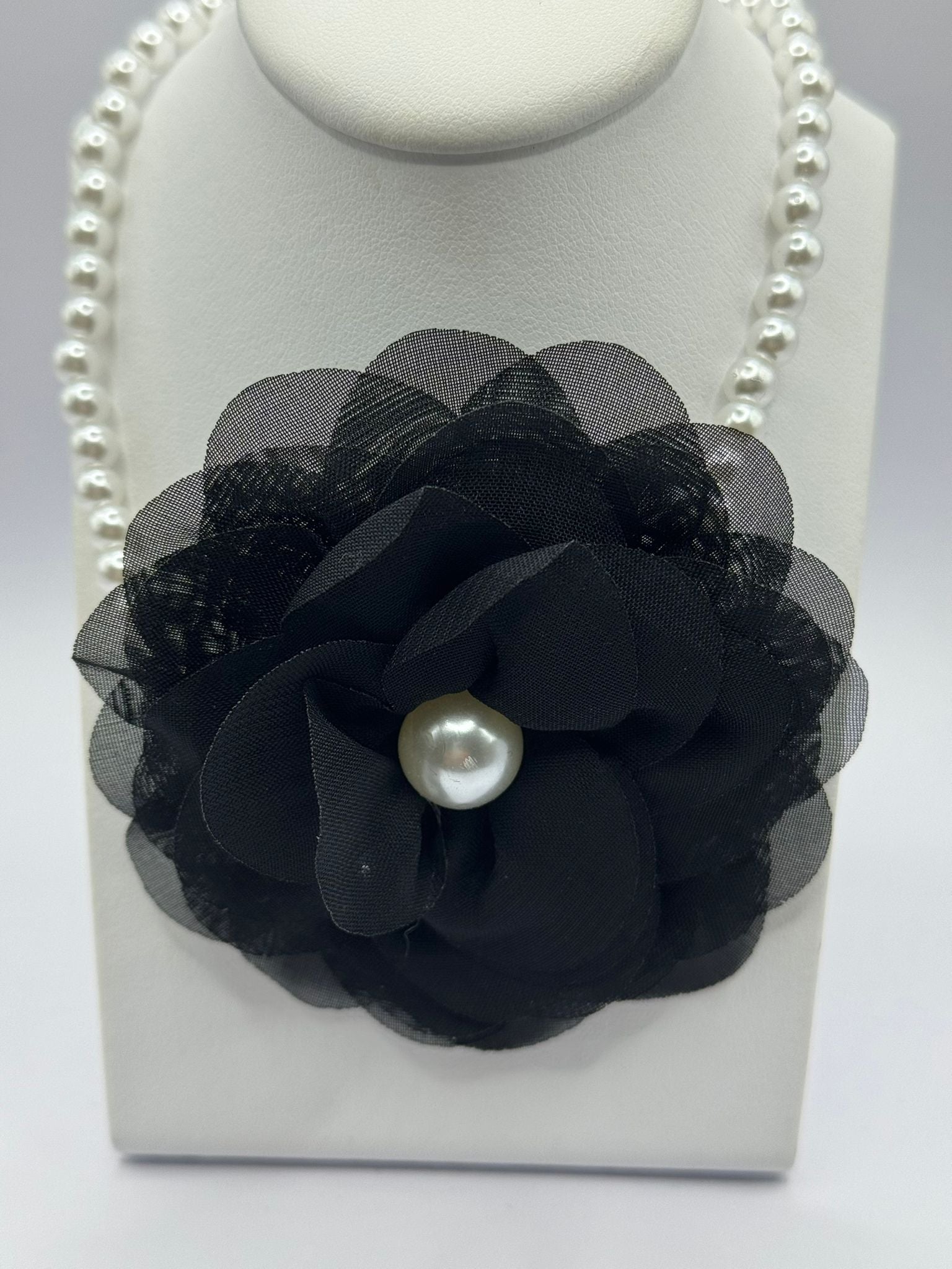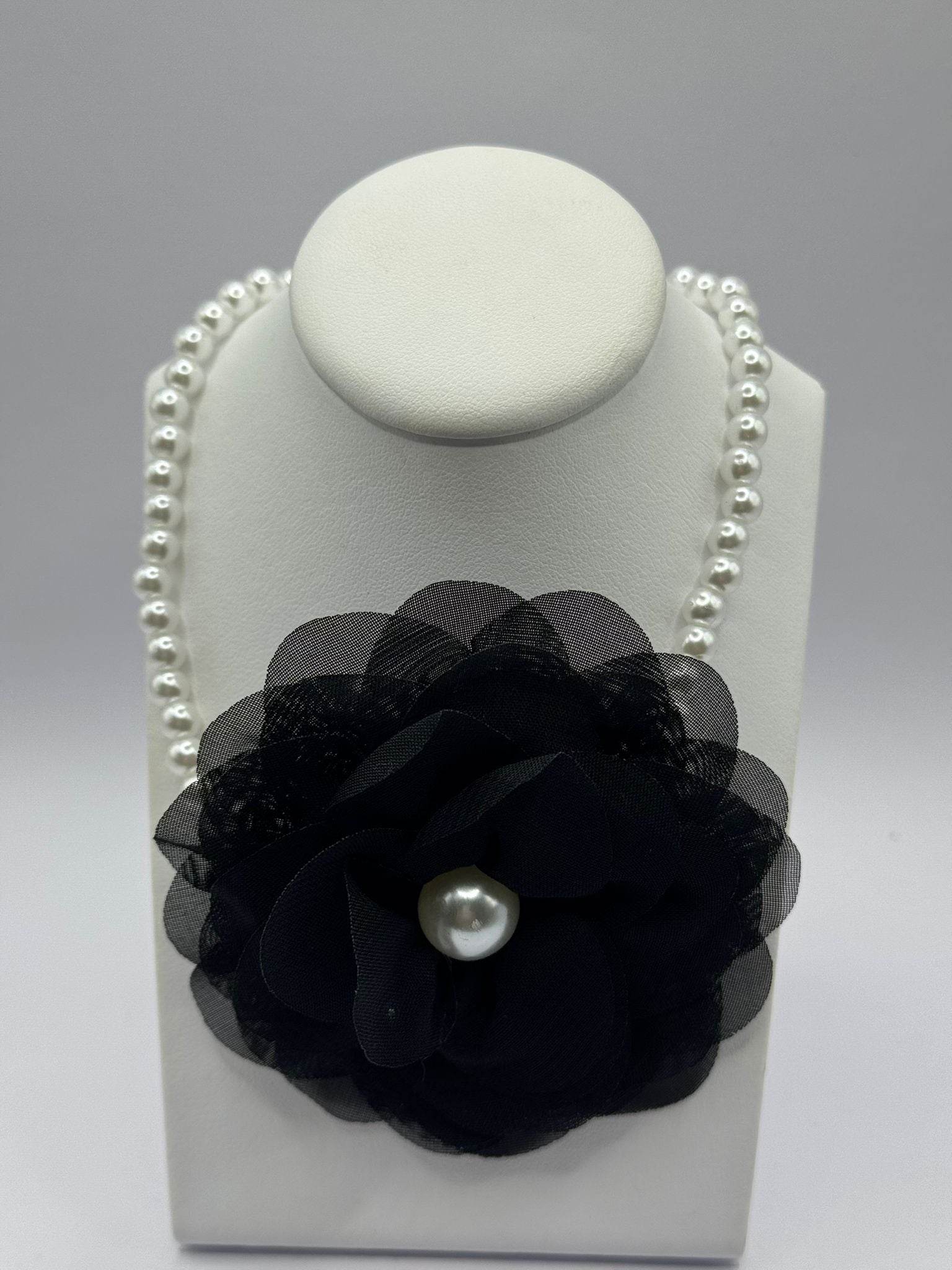 COLLANA CON SFERE BIANCHE E FIORE BLACK